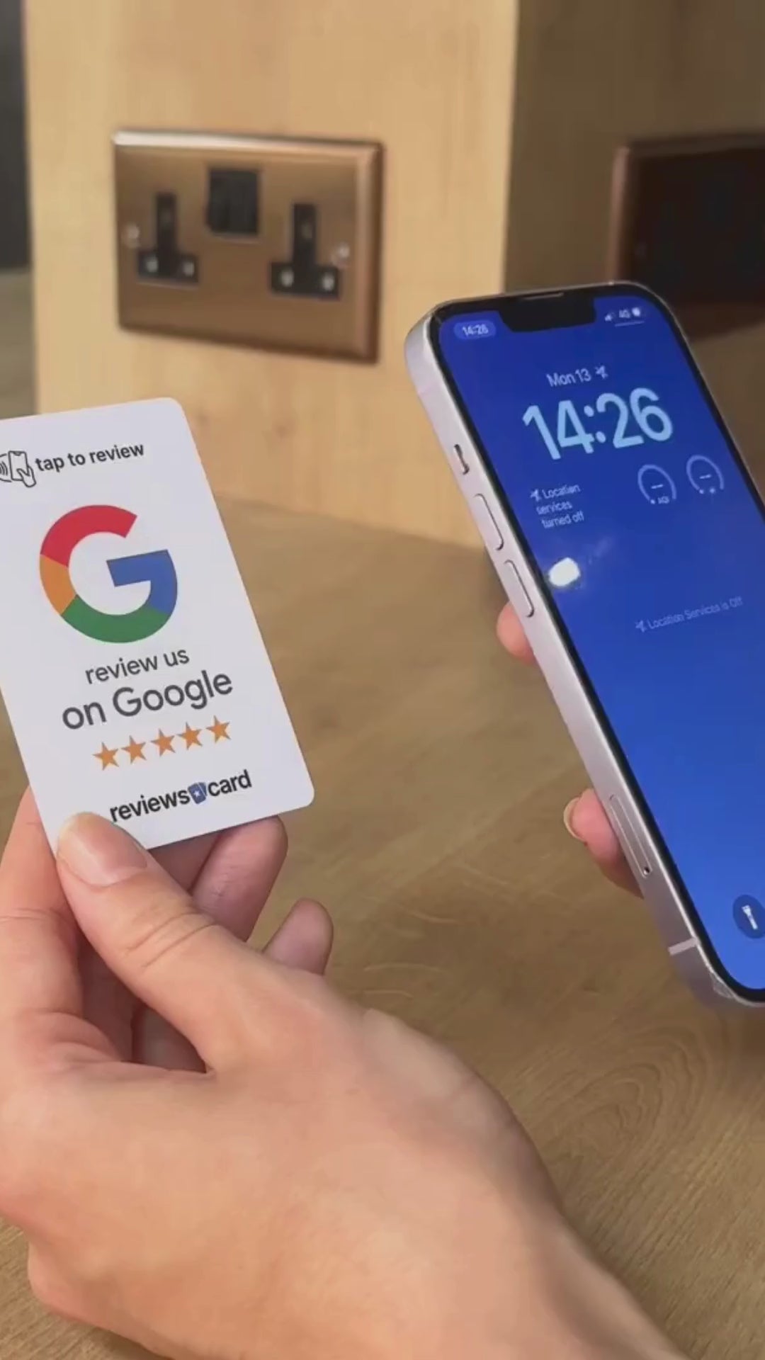 It’s easy! Customers tap their phones on our cards or table-cards. They’ll be directed straight to your Google/Trustpilot reviews page, where they can leave a 5-star review instantly boosting customer engagement and your review count.
