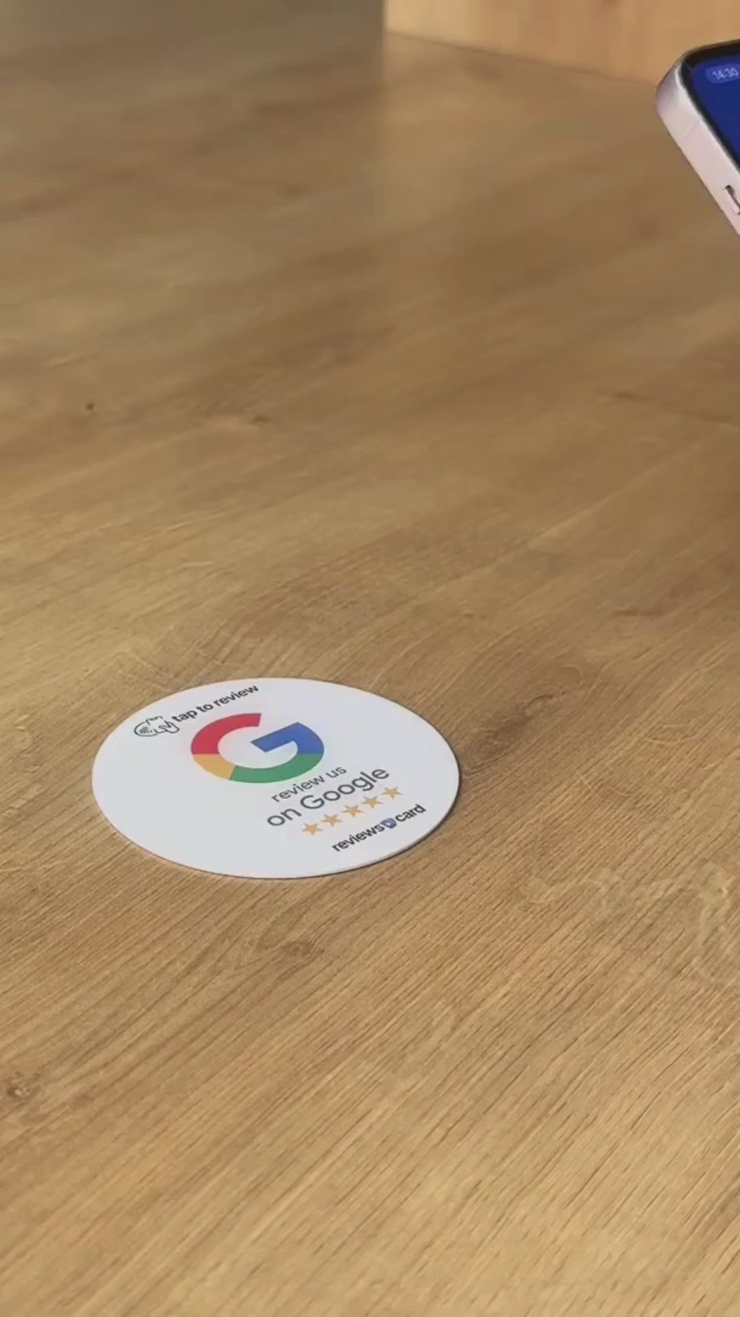 All you have to do is simply tap the customers phone with the Google review card and it will instantly open up your Google review page.